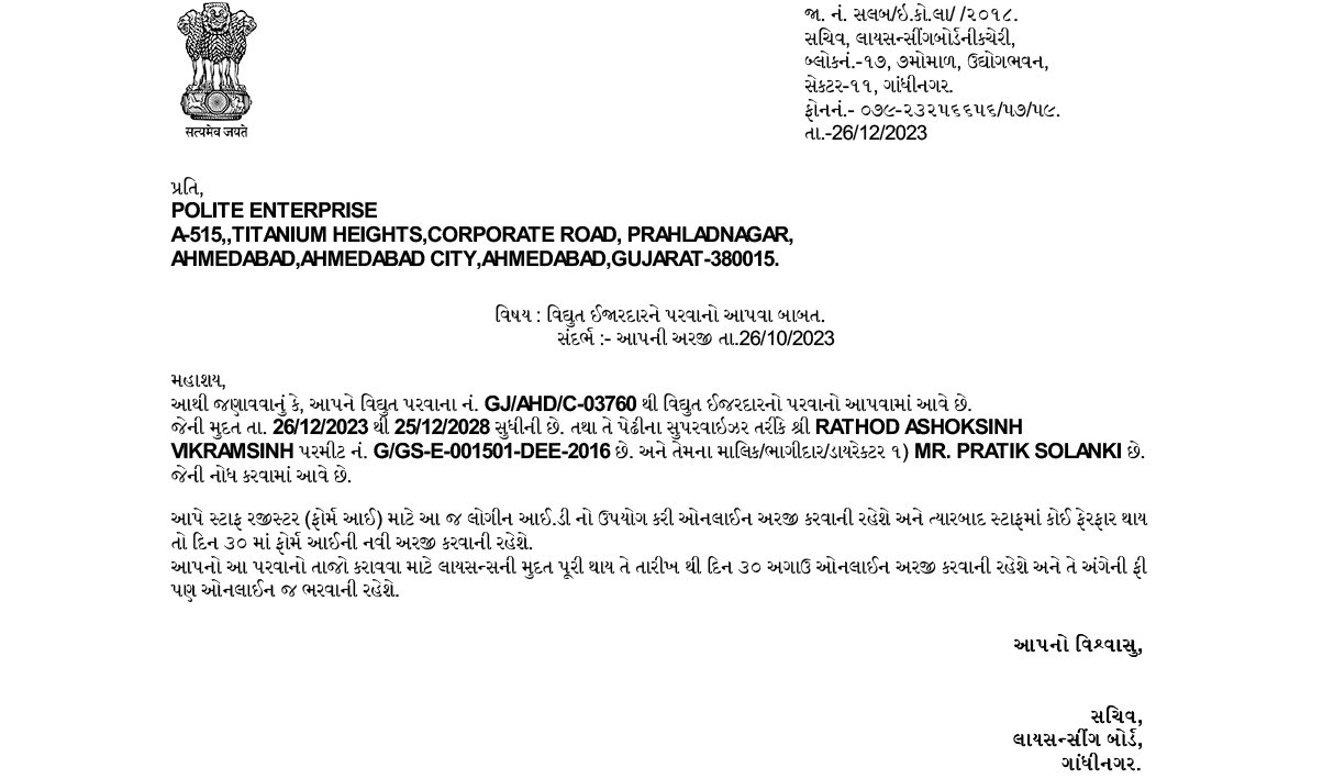 CERTIFICATE OF ENROLMENT OF FIRE SAFETY OFFICER (SPECIALIST)